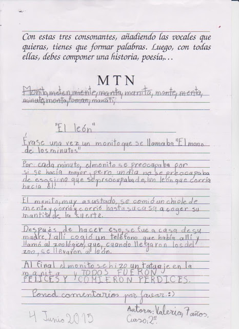En esta ocasión, con las consonantes M, T, N y añadiendo vocales, nuestro alumnado ha buscado palabras para construir historias, que, a la vista de los resultados, han quedado superoriginales. ¡Enhorabuena a todos/as!